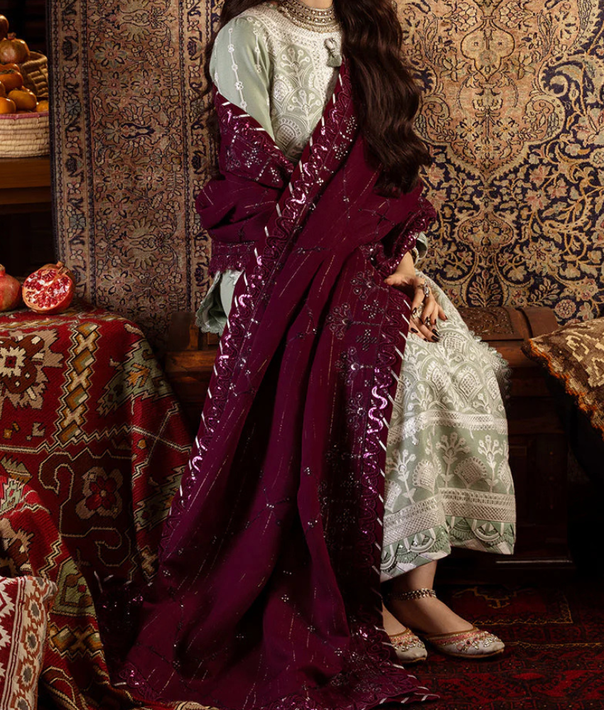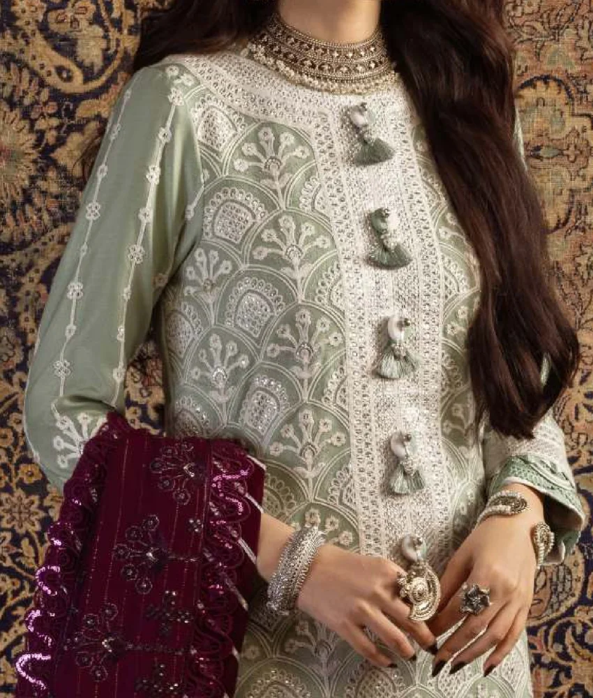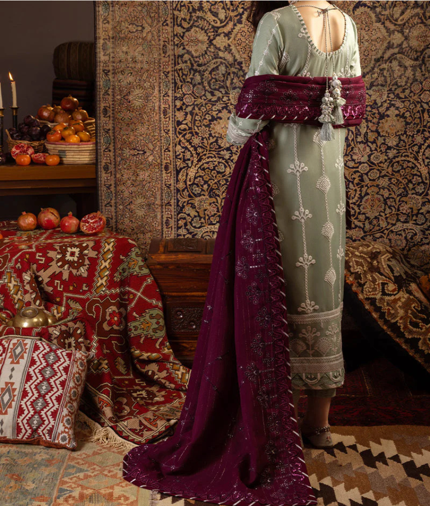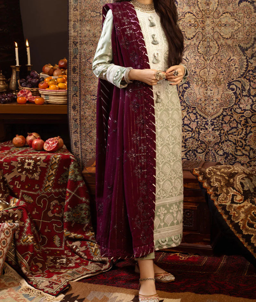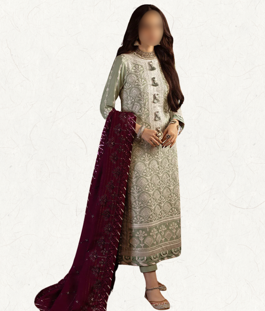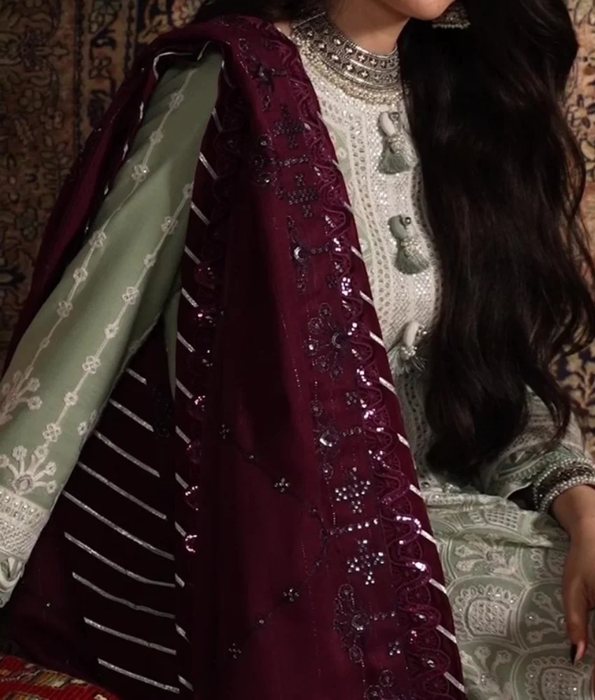 Refresh your look with this elegant Asim Jofa light-green embroidered twill suit. The detailed embroidered shirt, stylish embroidered shawl dupatta, and comfy dyed twill trousers create a beautiful designer outfit perfect for casual days, events, and festive wear. A soft, classy colour with premium embroidery—ideal for anyone who loves effortless style and designer-quality fashion.