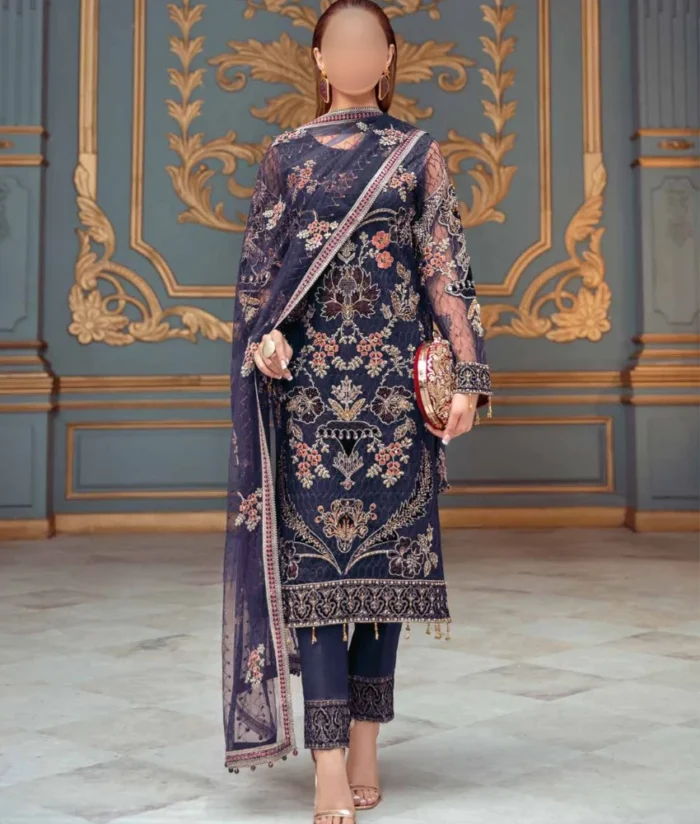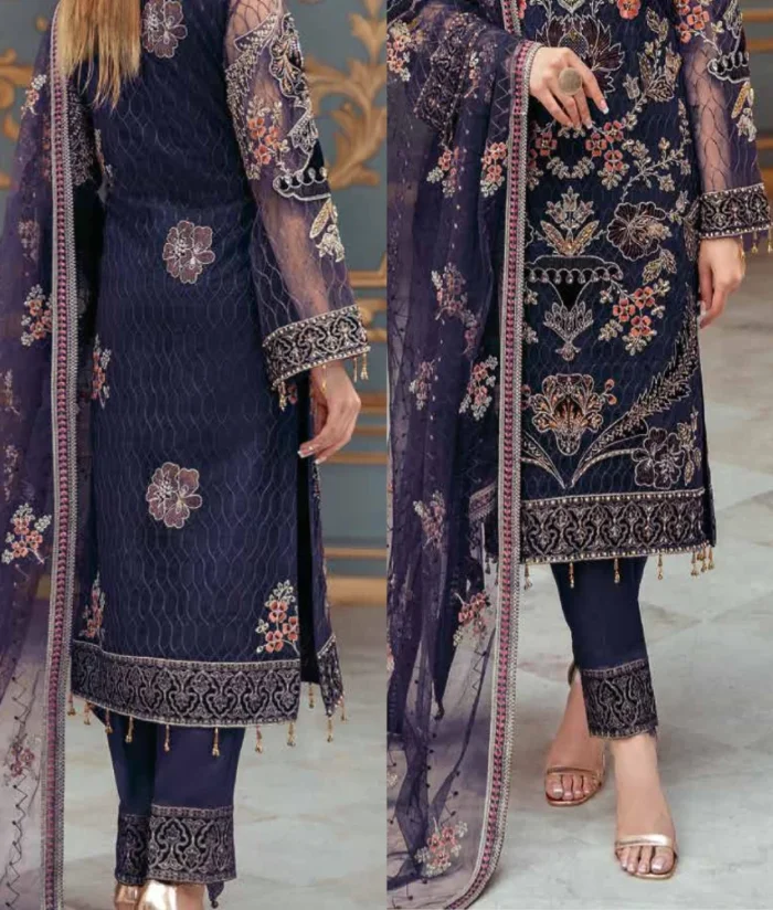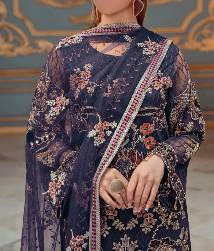 Embroidered Handmade Net Sleeves With Velvet Aplic