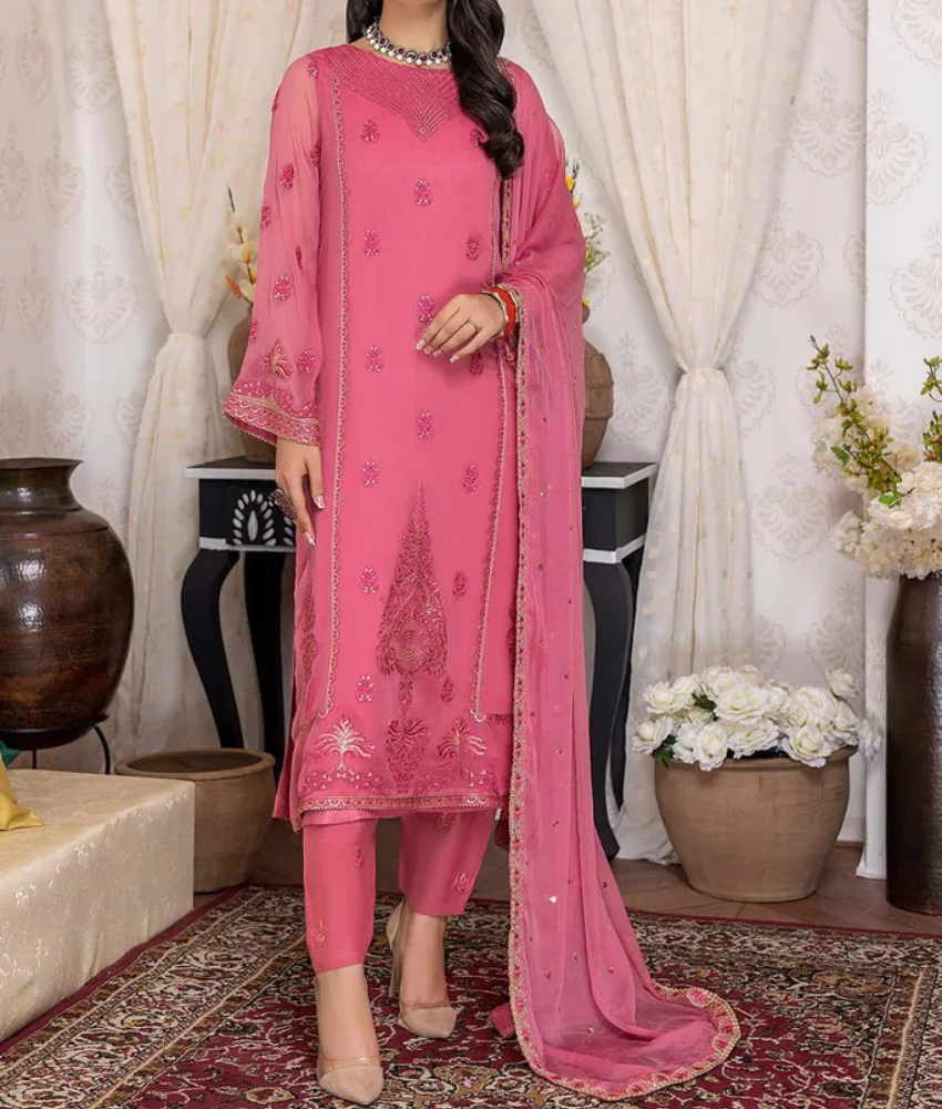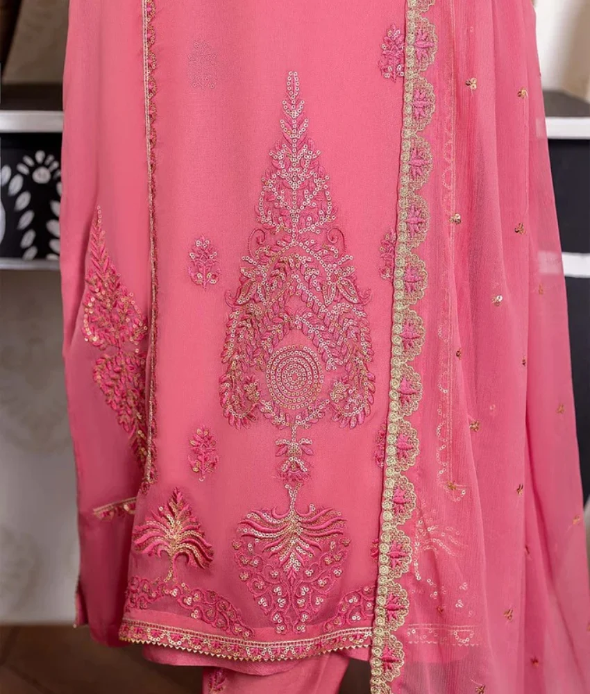 Charizma Ready Made Pink Floral Embroidered Chiffon Suit