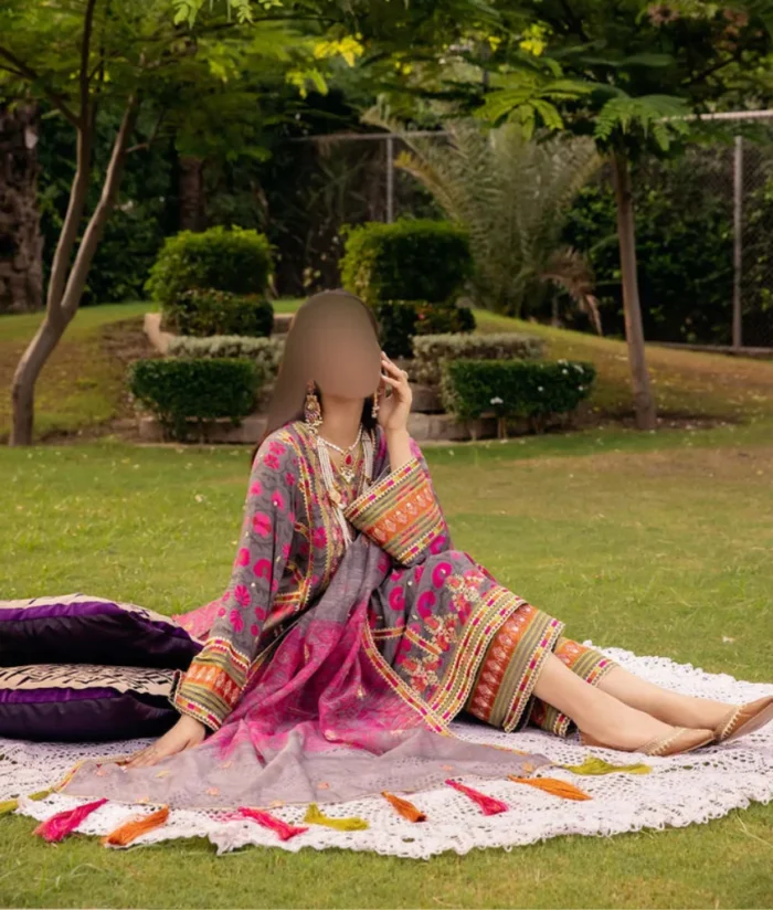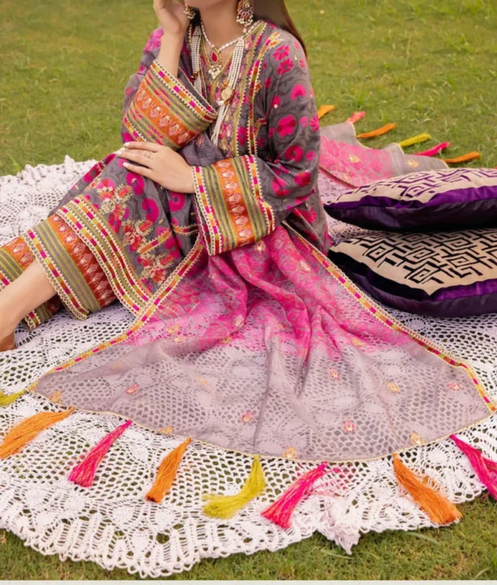£34.99Charizma Ready-to-Wear Lawn– Bright Yellow 3-Piece with Floral Print & Purple Chiffon Dupatta | Ch-006