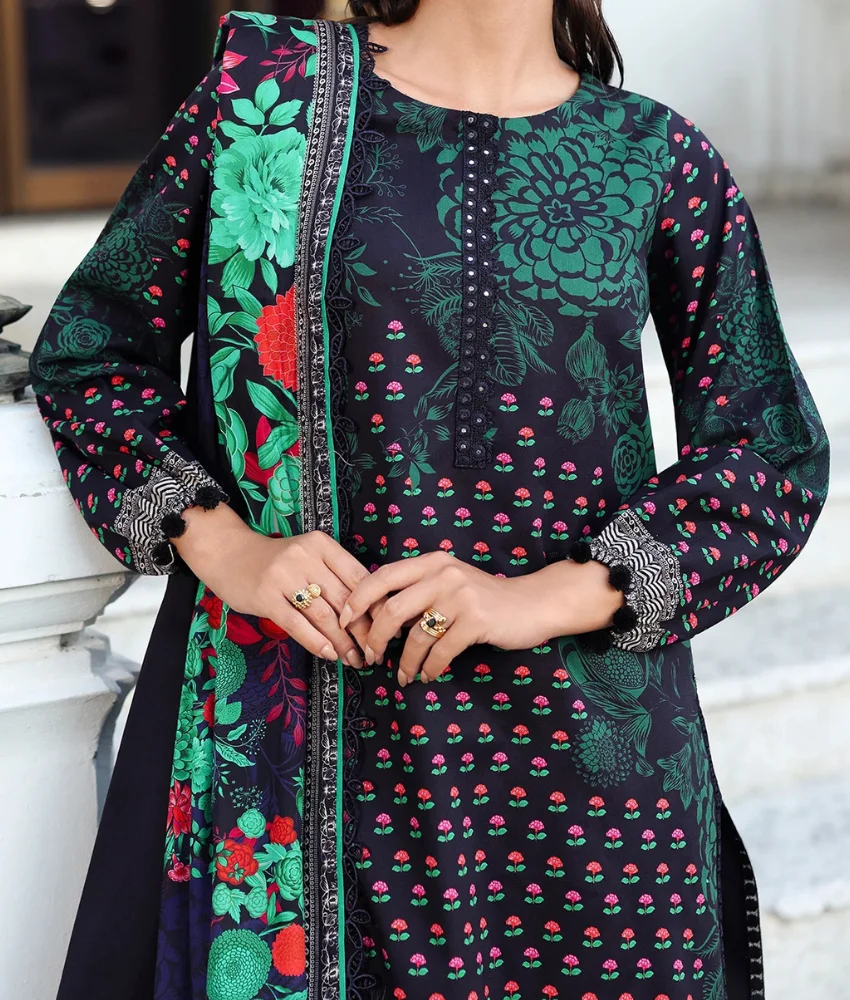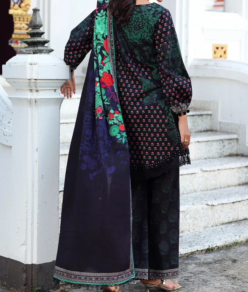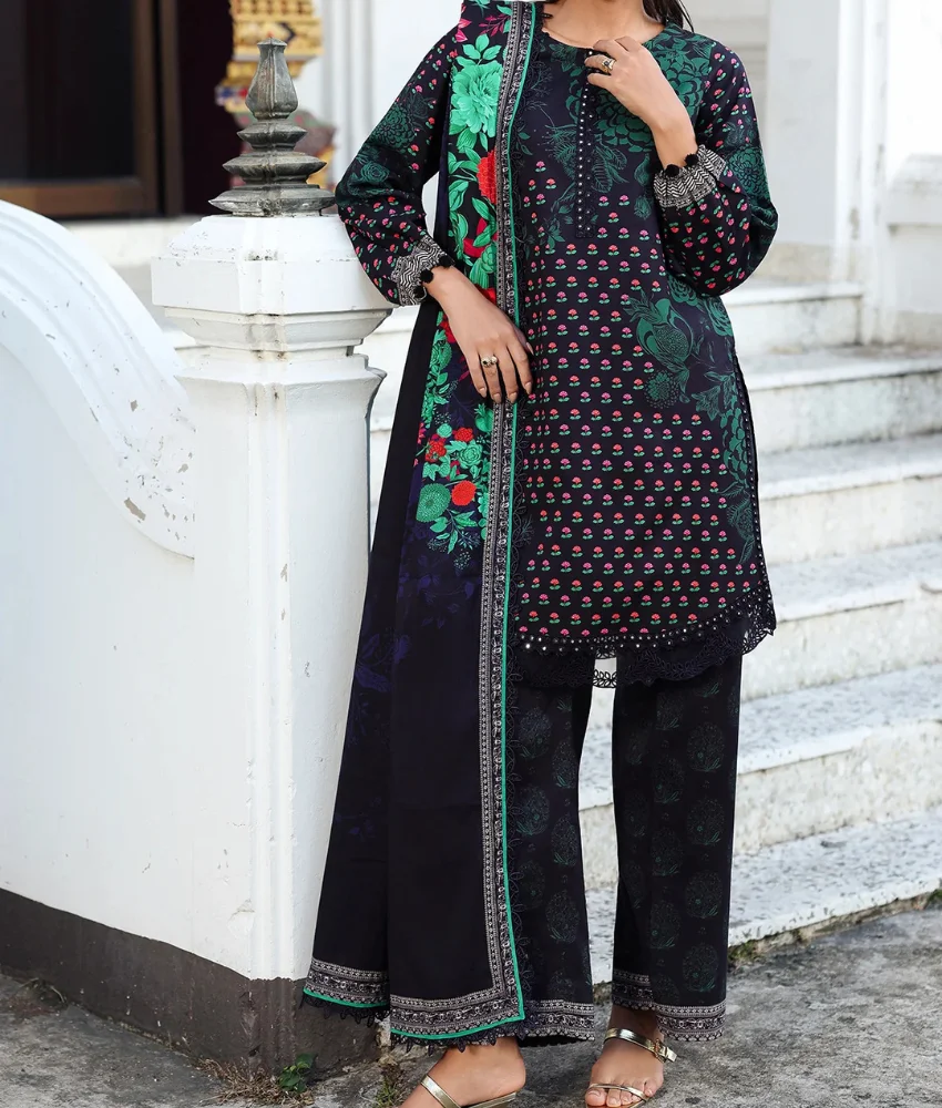 Crafted from premium linen fabric, this suit offers comfort, breathability, and a soft fall. The matching floral printed dupatta enhances the overall design, while coordinated trousers complete this elegant 3-piece ensemble. Perfect for casual wear, festive gatherings, and semi-formal occasions.