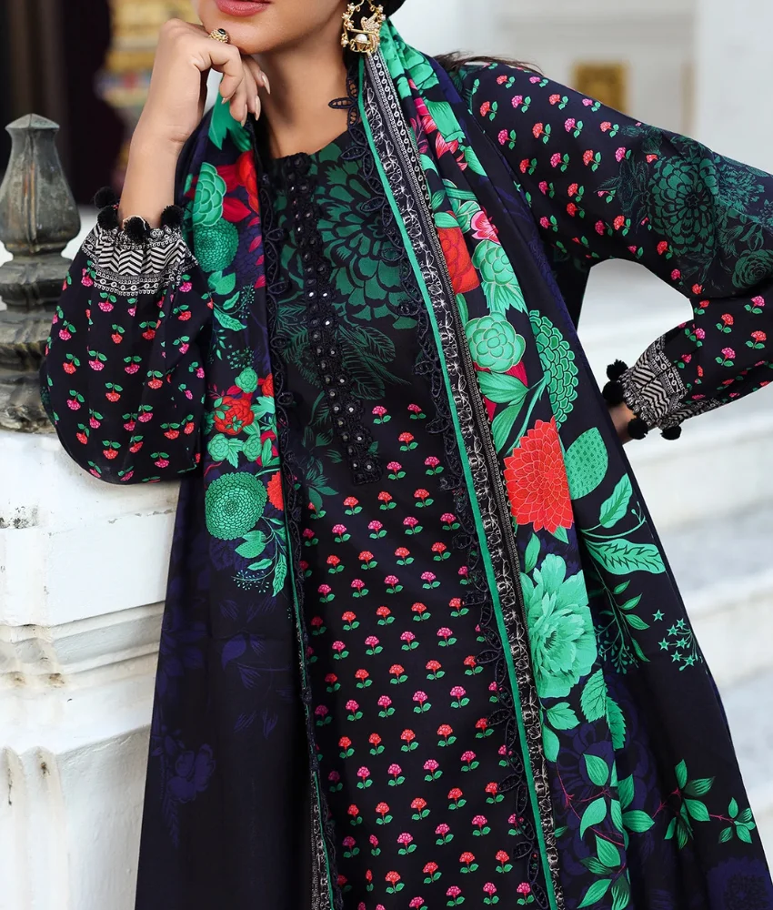 Charizma Black Floral Printed Embroidered Linen Unstitched Suit