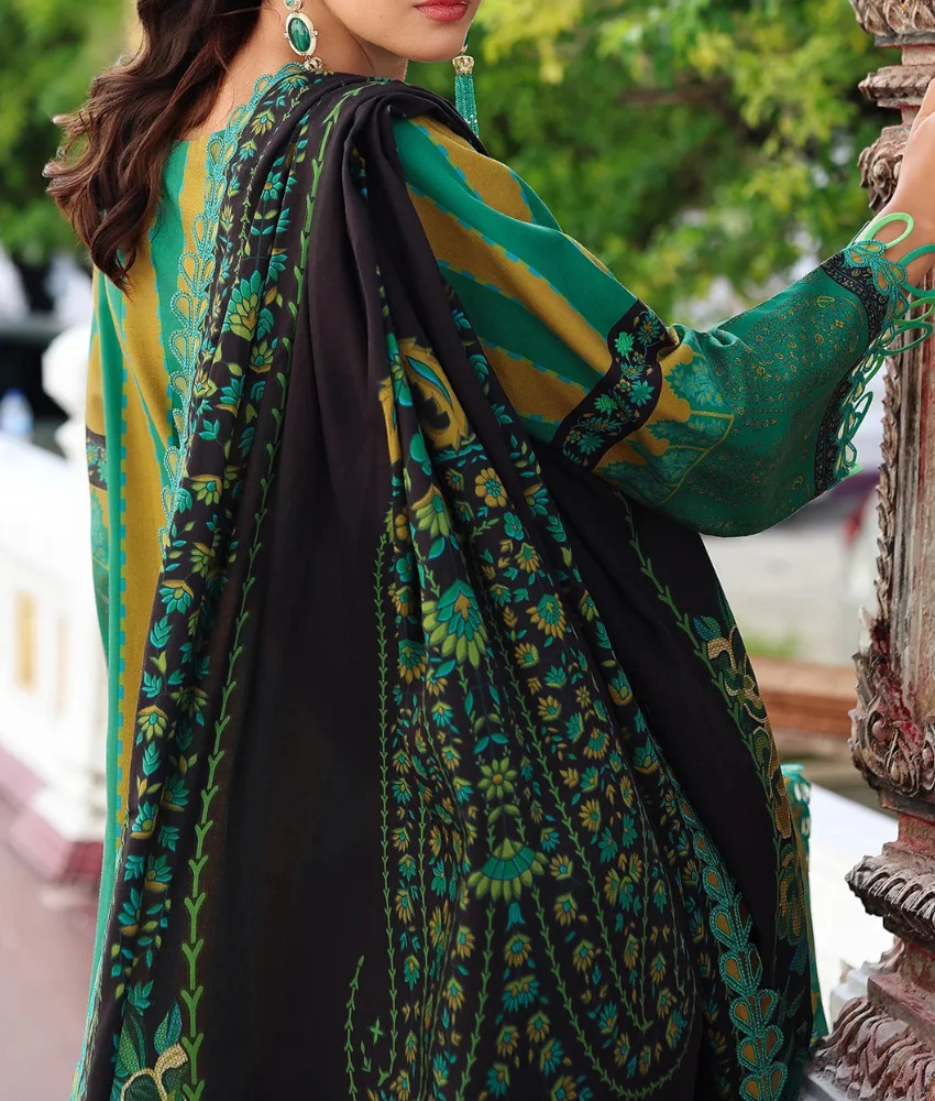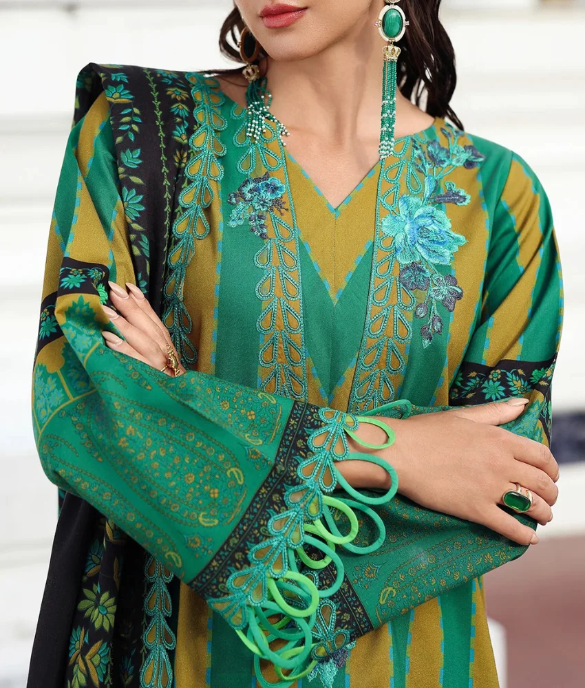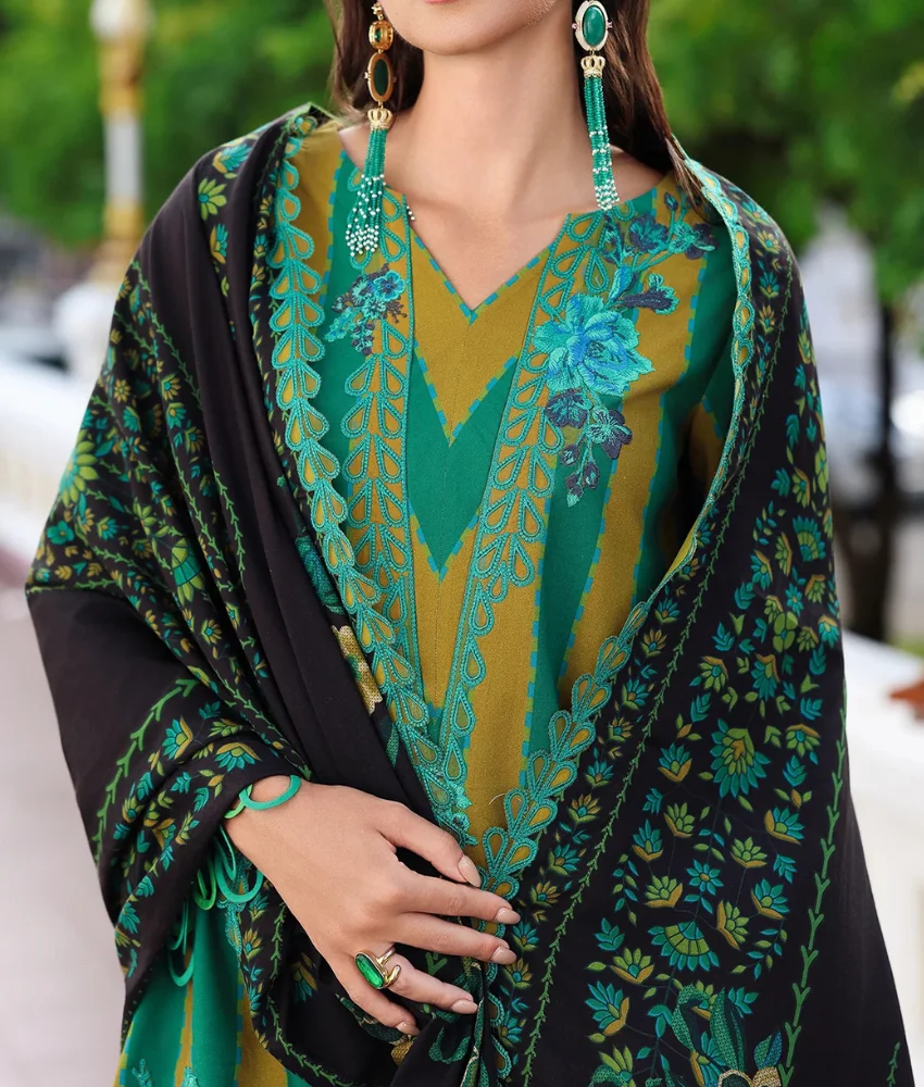 Charizma Summer Lawn Suitā Teal Green 3-Piece with Floral Embroidery & Lime Printed Dupatta | Ch-0011
