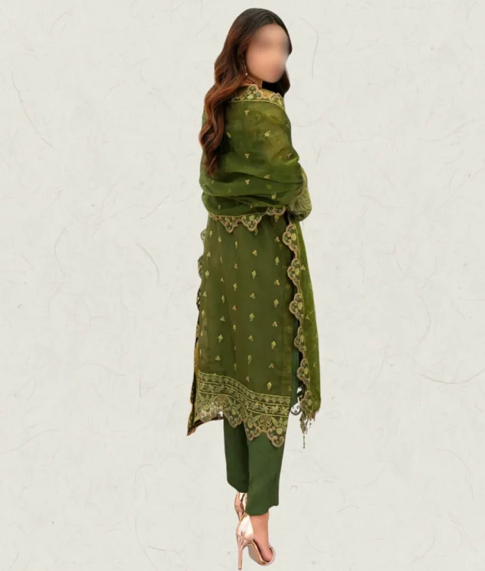 Handmade Pearl Embroidered Organza Dress – Green
