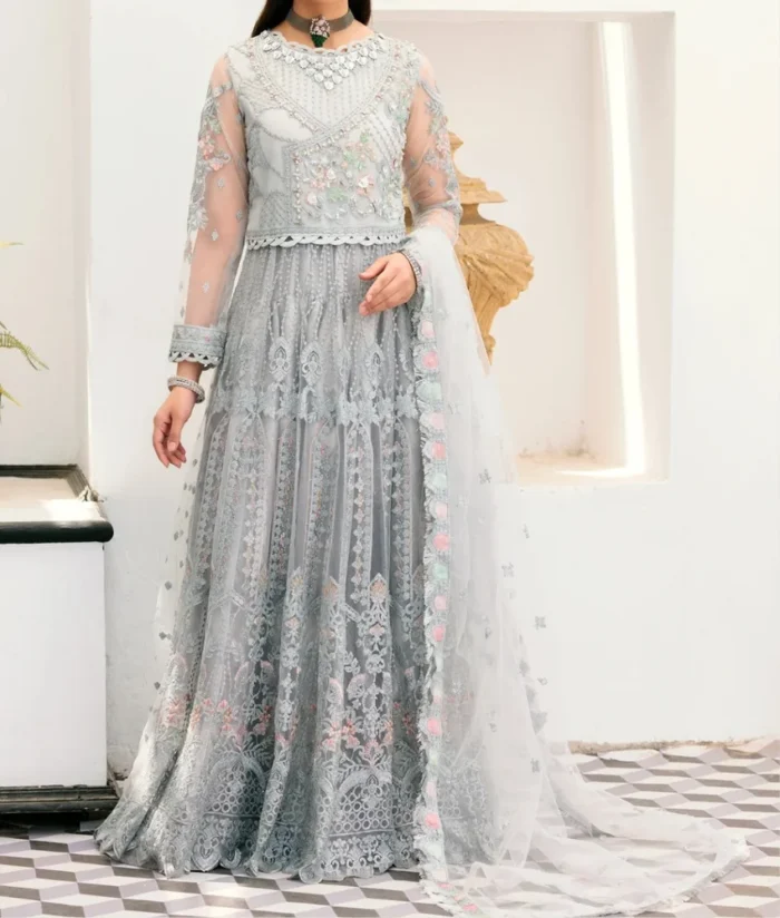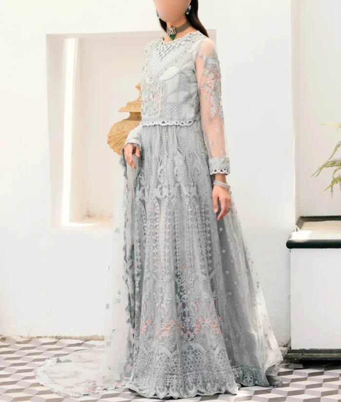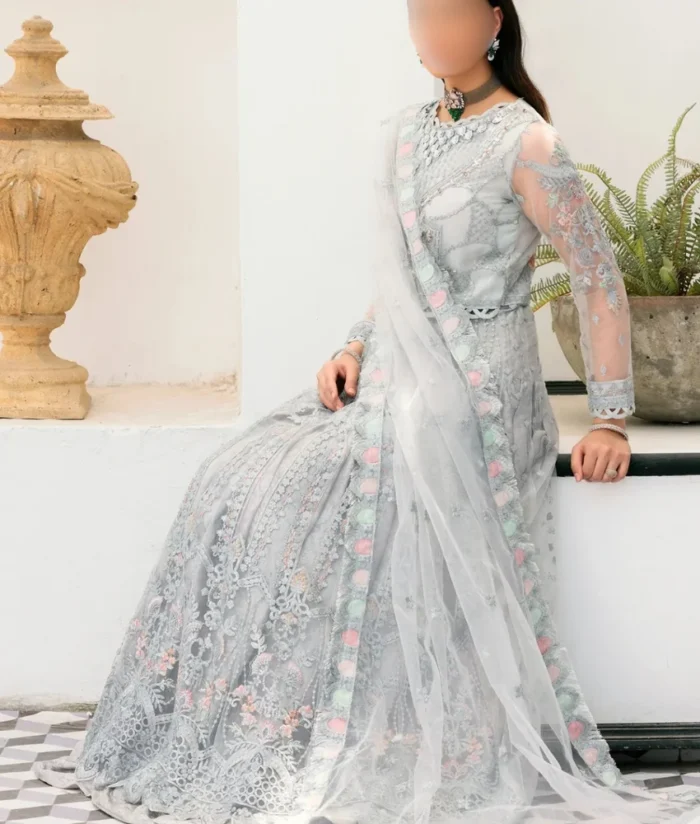 Be the first to review “Elegant Handmade Pearls Embroidered Net Maxi Dress in Grey” Cancel reply