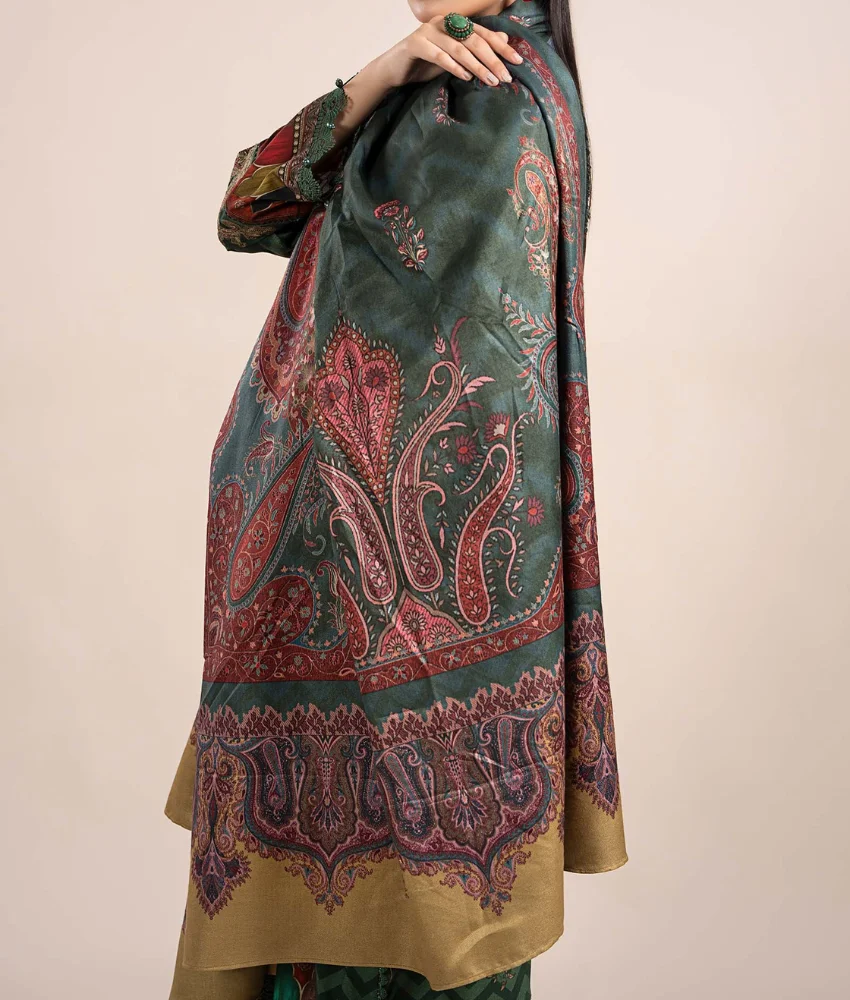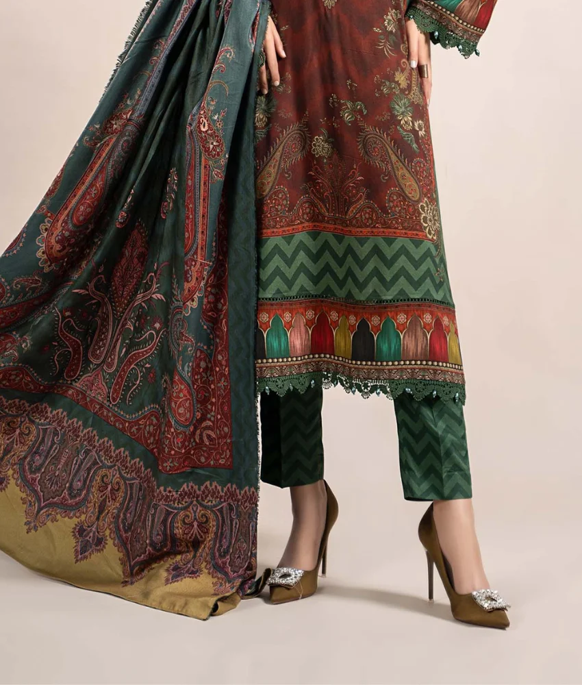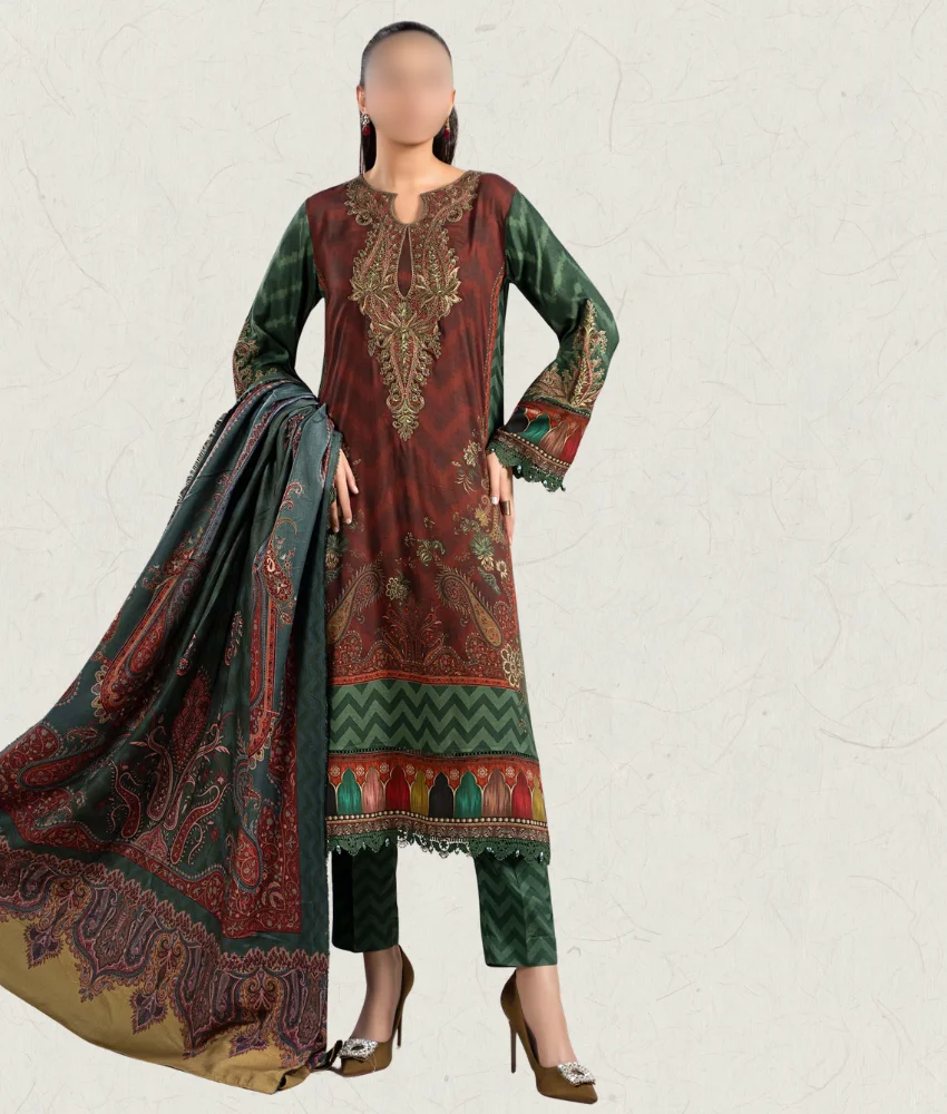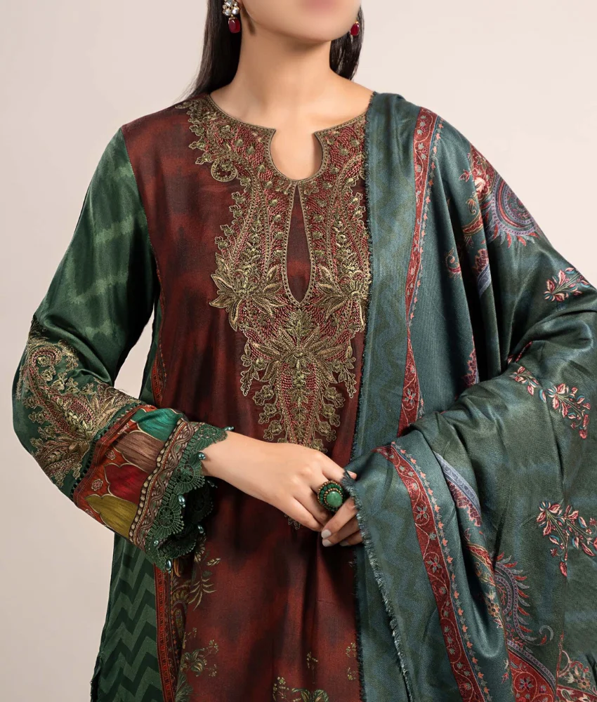 Maria B 3-Pc Floral Thread Embroidered Premium Linen Suit & Warm Shawl