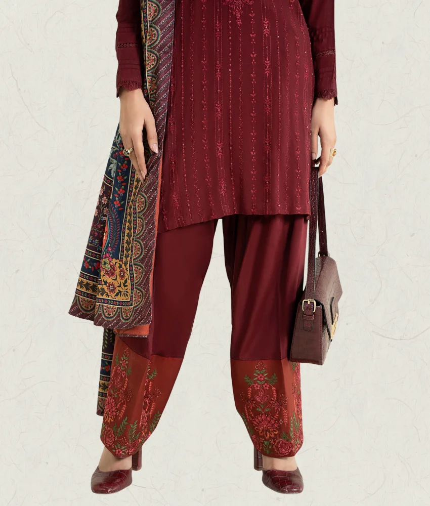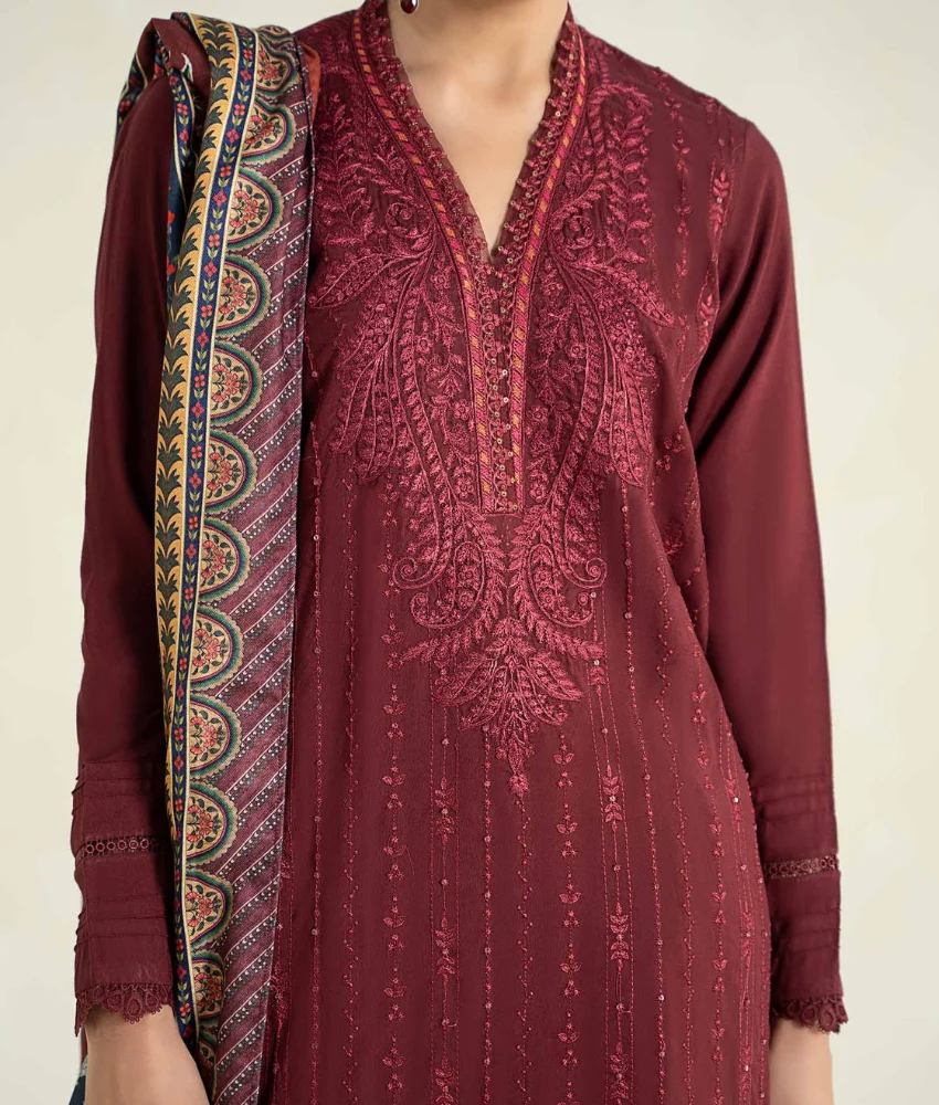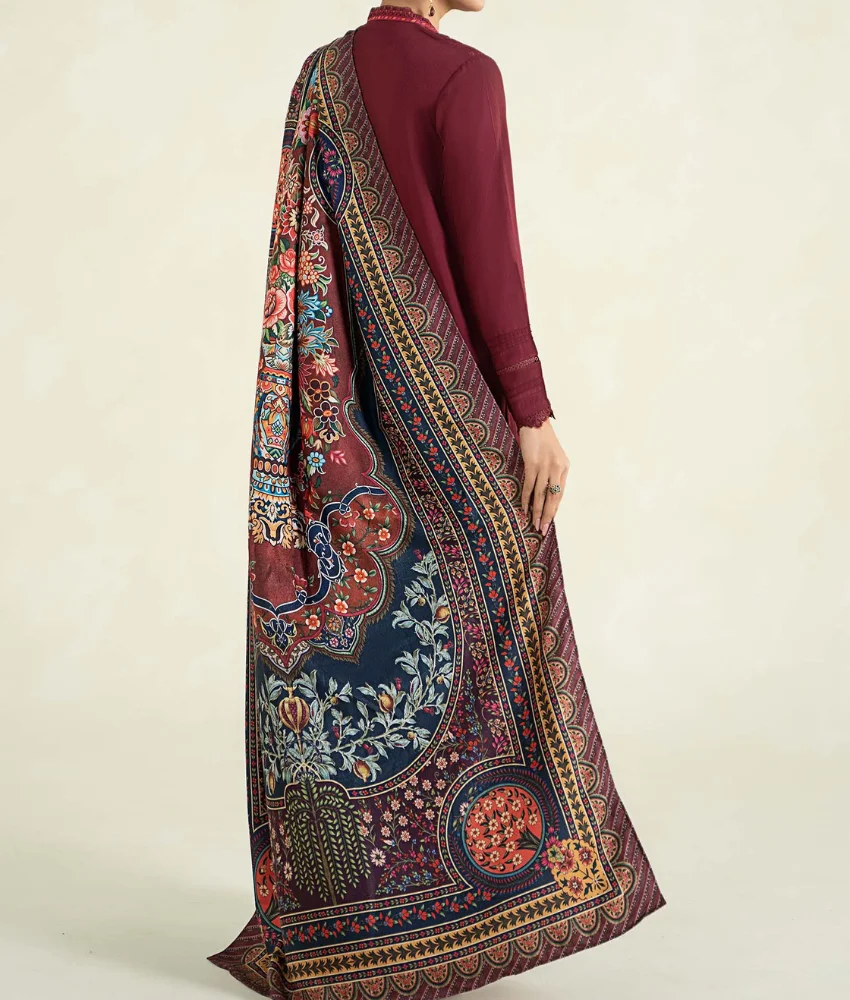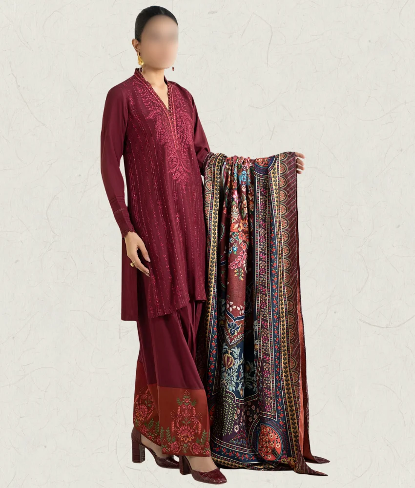 Maria B 3-Pc Embroidered Linen Suit with Printed Warm Shawl