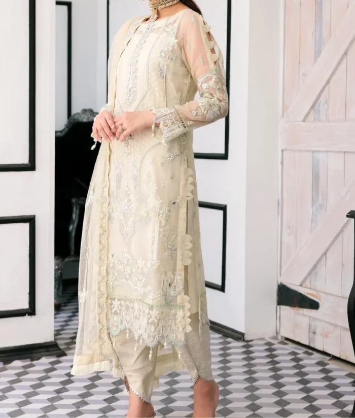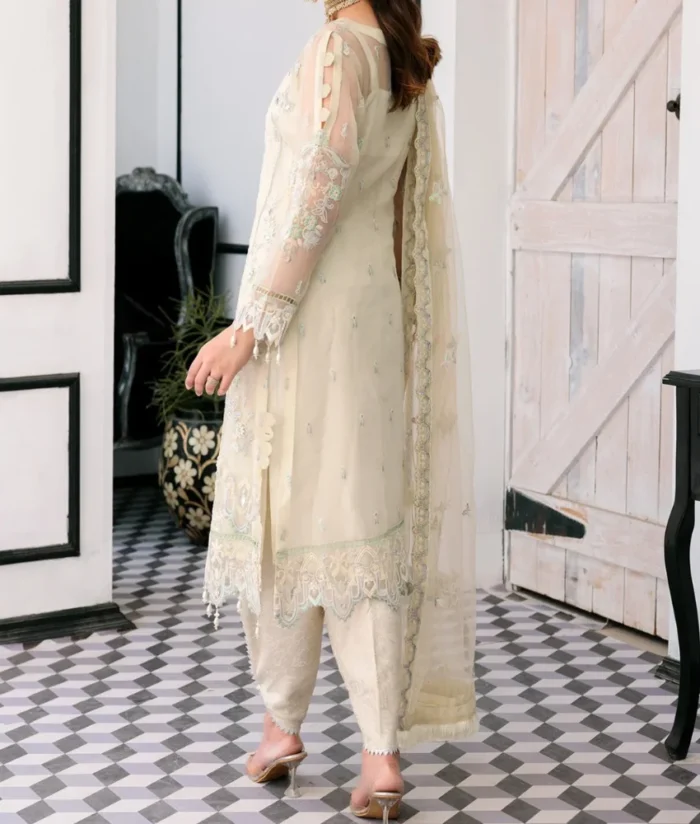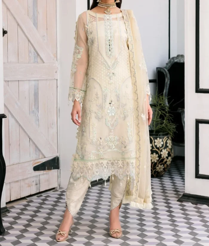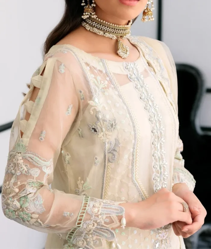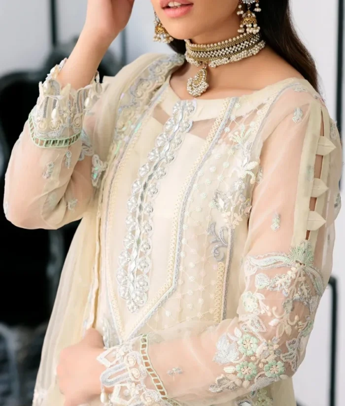 Be the first to review “Elegant Off-White Mirror Embroidery Organza Dress For Wedding” Cancel reply