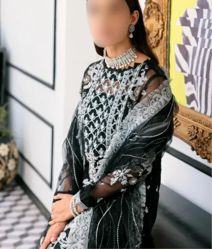 Luxury Hand-Made Pearls Embroidered Net Dress In Purple